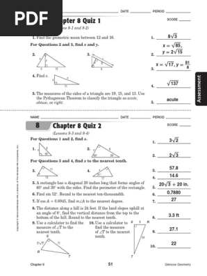 Many of your lessons below have an internet link for you to click on. The chapter 7 resource masters includes the core materials needed for chapter 7. Welcome to your first day of school! 14 days lesson standards addressed 1 7.g.b.4 2 7.g.b.4 Geometry unit test part 1 question 1: